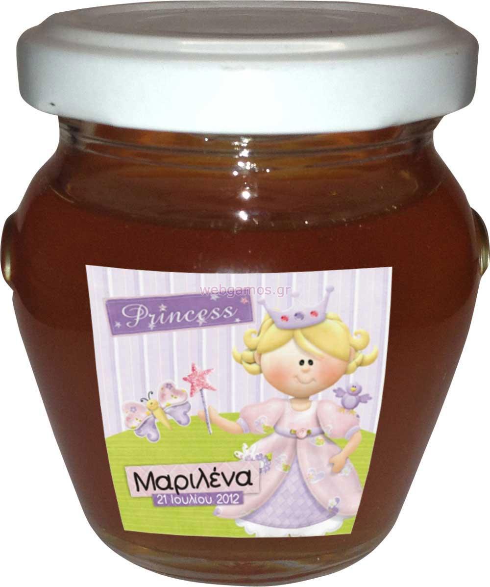 Βαζάκι με θέμα κοριτσάκι πριγκίπισσα με μαρμελάδα της επιλογής σας. Η τιμή αφορά βαζάκι orchio 106 ml. Μπορούμε να προσαρμόσουμε οποιο θέμα θέλετε.