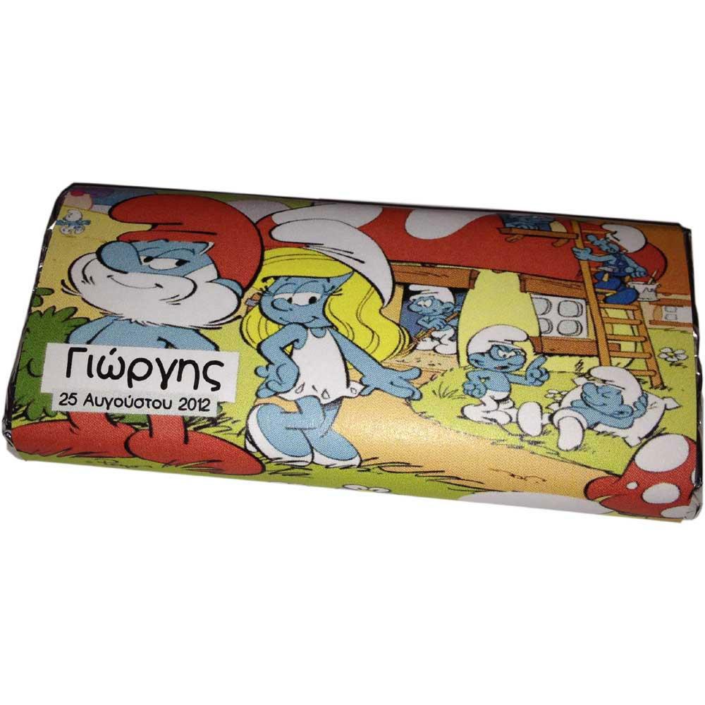 Σοκολάτα για βάπτιση τυπωμένη με τα στρουμφάκια των 30γρ.