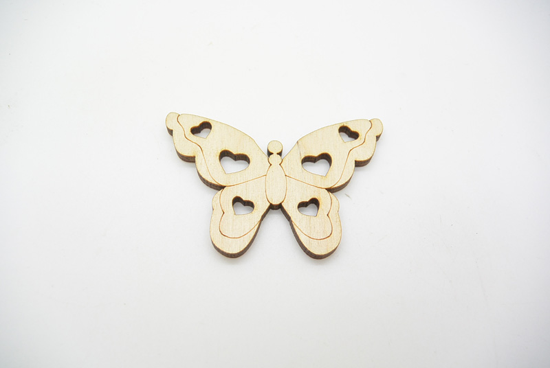 Ξύλινη Διακοσμητική πεταλούδα με καρδιές  σε φυσικό άβαφο με διάσταση 6.5 x 4.4 εκ. Συσκευασία 50 τεμαχίων. Η τιμή αφορά το τεμάχιο.