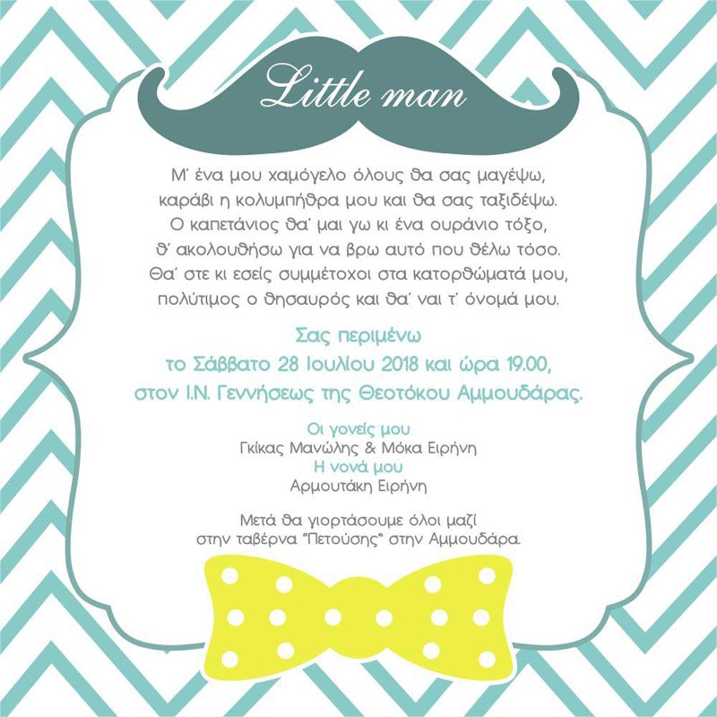 Βάπτιση | Προσκλητήριο Βάπτισης μουστάκι (w685)