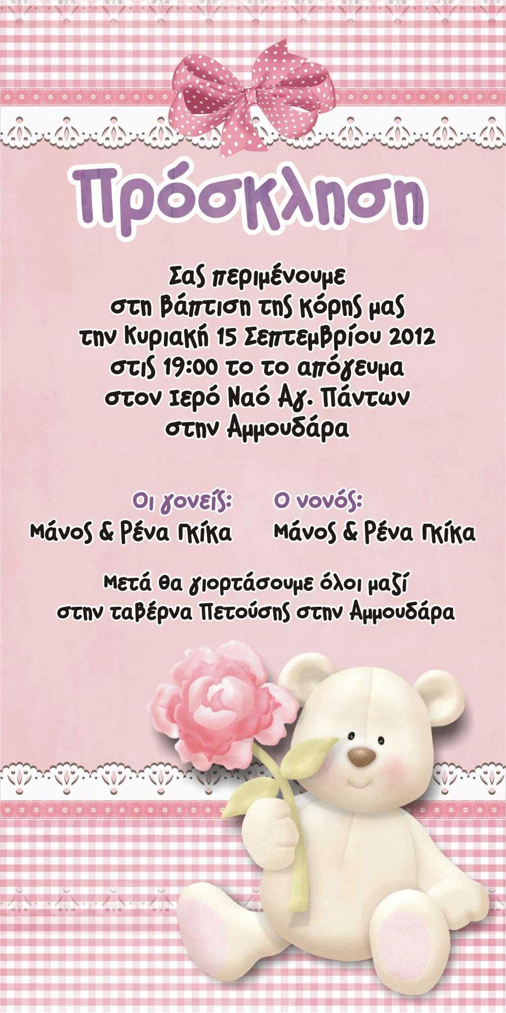 Βάπτιση | Προσκλητήριο Βάπτισης care bear (w625)