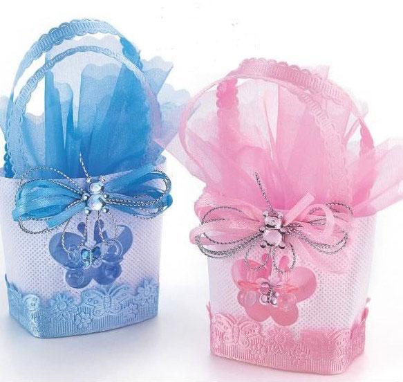 Μπομπονιέρα Βάπτισης πουγκί με πεταλούδα με διαστάσεις 7.5 x 7 cm. Η τιμή αφορά το δέσιμο της μπομπονιέρας με 9 κουφετάκια smarties ή 5 αμυγδάλου.