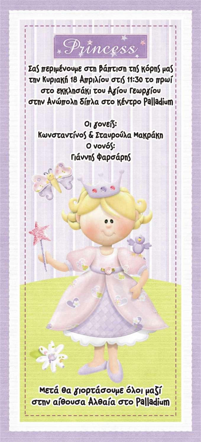 Οικονομικό Προσκλητήριο βάπτισης έγχρωμο με θέμα πριγκίπισσα. Η τιμή αφορά και την εκτύπωση. Μπορεί να γίνει σε διάφορες διαστάσεις καθώς να δωθεί και ως ρολάκι.