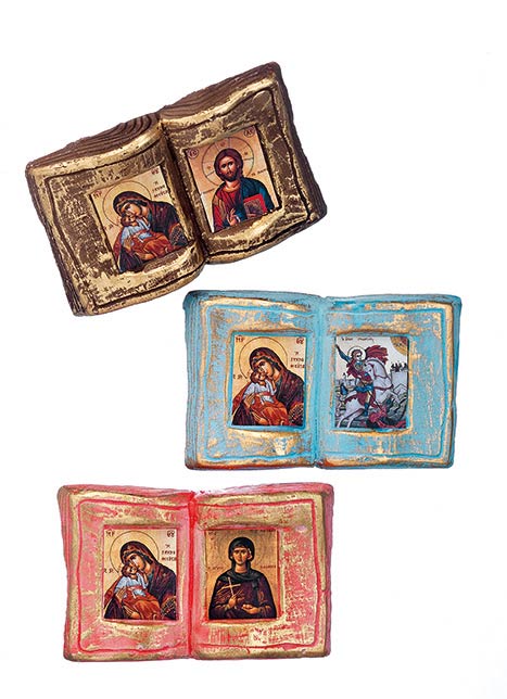 Μπομπονιέρα Βάπτισης εικόνα με επιλογή αγίων. Η τιμή περιλαμβάνει το δέσιμο της μπομπονιέρας με 5 κουφέτα αμυγδάλου ή 9 smarties. Διαστάσεις 10 x 6,5 εκ.