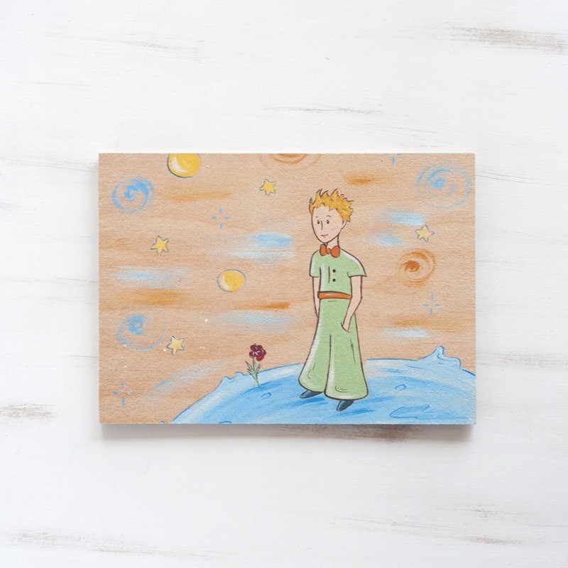 Ξύλινο καδράκι natural παραλληλόγραμμο με σβησίματα σιέλ και με τον μικρό πρίγκιπα, ιδανικό για διακοσμήσεις και κατασκευές