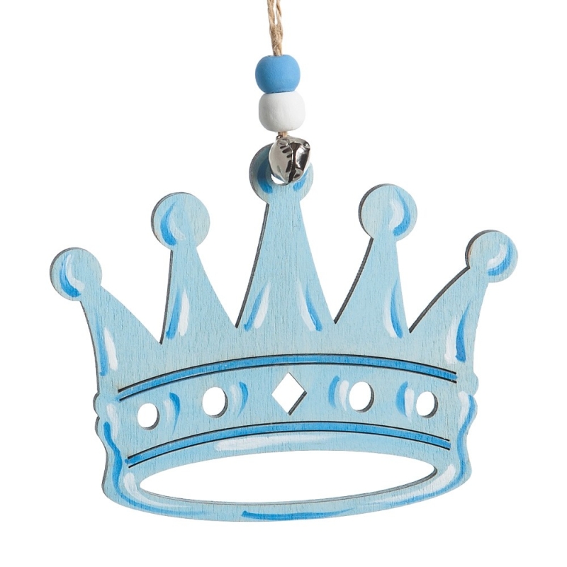 Ξύλινη κρεμαστή κορώνα σε σιελ χρώμα διακοσμημένη με χάντρες και μεταλλικό κουδουνάκι. Ιδανικό για διακόσμηση. Σιελ και στις 2 όψεις.