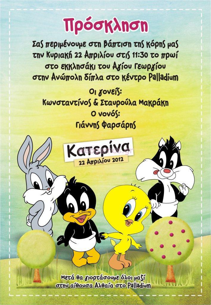 Βάπτιση | Προσκλητήριο Βάπτισης looney tunes