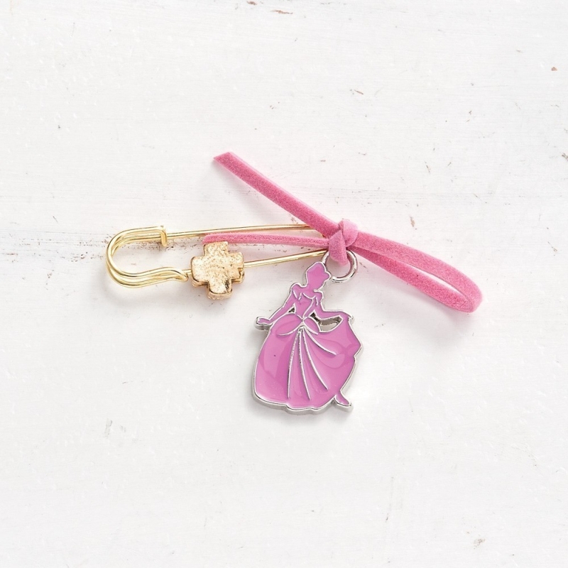 Disney Cinderella μαρτυρικό σε χρυσή παραμάνα με σταυρό επίχρυσο και δέρμα suede ροζ.