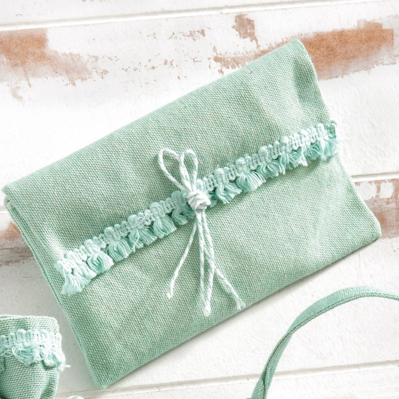 Φάκελος λινός διακοσμημένος με κρόσια σε χρώμα βεραμάν. Διαφορετικές διαστάσεις διατίθενται κατόπιν συννενόησης.