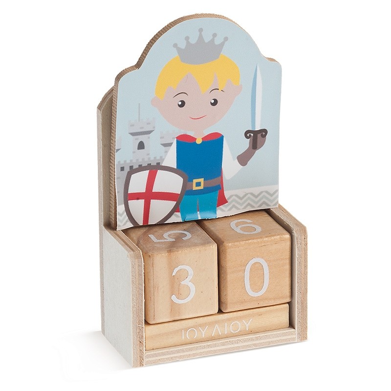 Ξύλινο ημερολόγιο με κύβους σε natural χρώμα. Διακοσμημένο με κοπτικό πρίγκιπα.