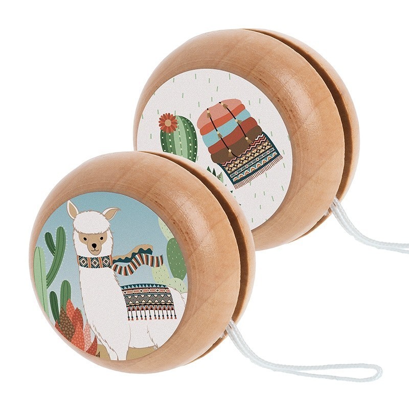 Ξύλινο natural γιο-γιο με σκοινάκι. Είναι διακοσμημένο με αυτοκόλλητο print λάμα με διαφορετικό σχέδιο μπρος-πίσω.