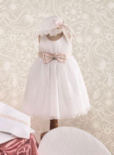 Βαπτιστικό Φόρεμα από μουσελίνα. Η τιμή περιλαμβάνει το φορεματάκι και το καπελάκι του. Μπορεί να γίνει σε διάφορες αποχρώσεις κατόπιν παραγγελίας.