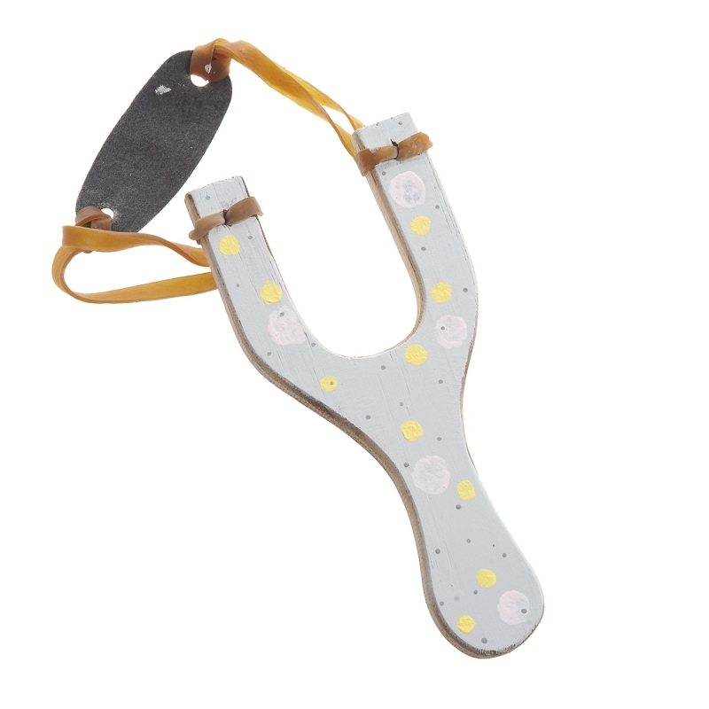 Ξύλινη ζωγραφιστή σφεντόνα σε βάση γκρι και μεγάλα πουά.