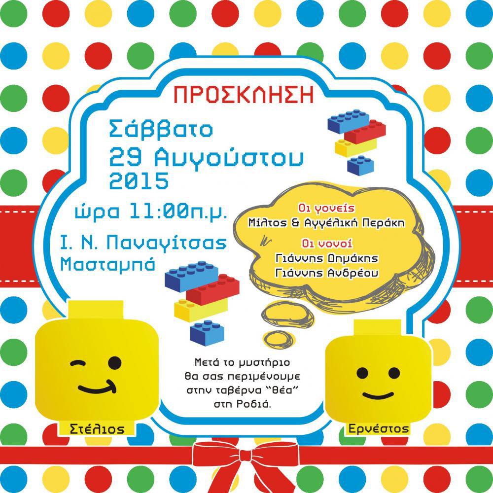 Προσκλητήριο Βάπτισης lego τουβλάκια (w666)
