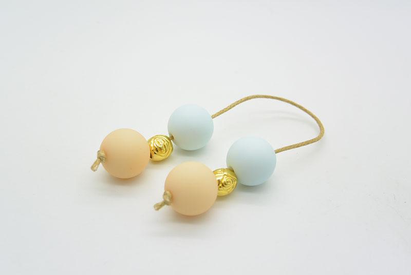 Μπεγλέρι σε σιέλ - σομόν απόχρωση. Η τιμή αφορά μόνο το μπεγλέρι, με επιπλέον χρέωση μπορεί να γίνει ολοκληρωμένη μπομπονιέρα. Η χάντρα έχει διάμετρο 1.6 εκ.