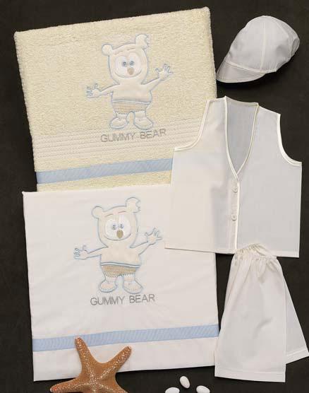 Λαδόπανα ελληνικής κατασκευής άριστης ποιότητας σε 2 αποχρώσεις με θέμα gummy bear. Το σετ περιλαμβάνει πετσέτα μεγάλη, σεντονάκι και σετ εσώρουχα.