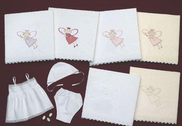 Λαδόπανα Βάπτισης με θέμα νεραΐδούλα ελληνικής κατασκευής άριστης ποιότητας βαμβακερά σε διάφορες αποχρώσεις. Το σετ περιλαμβάνει πετσέτα μικρή και μεγάλη, σεντονάκι και σετ εσώρουχα.