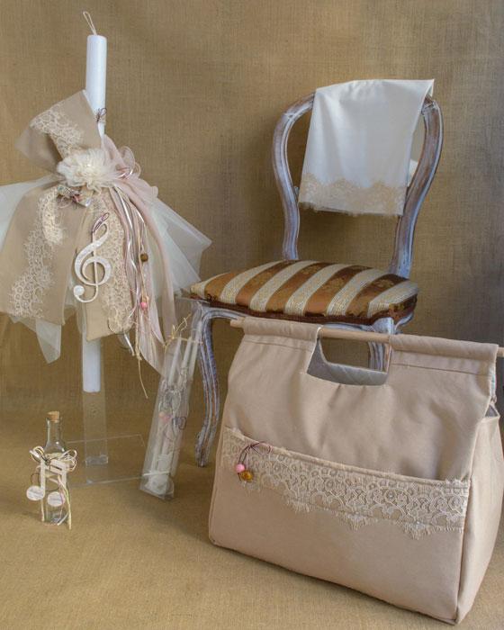 Σετ Βάπτισης μουσική. Το σετ περιλαμβάνει βαλίτσα χειροποίητη, σετ λαδόπανα, λαμπάδα