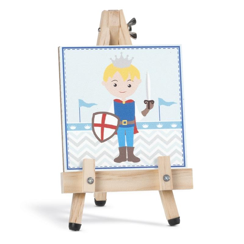 Μπομπονιέρα Βάπτισης καδράκι πρίγκιπας σε καβαλέτο. Διαστάσεις καδράκι 11 x 11 εκ και καβαλέτου 12 x 20 εκ.  Η τιμή περιλαμβάνει το δέσιμο της μπομπονιέρας με 5 κουφέτα αμυγδάλου ή 9 κουφετάκια smarties.  Ελάχιστη ποσότητα 50 τεμάχια.