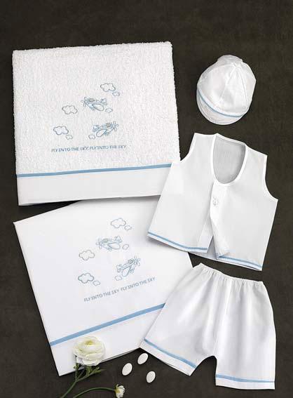 Λαδόπανα ελληνικής κατασκευής άριστης ποιότητας σε σιέλ απόχρωση. Το σετ περιλαμβάνει πετσέτα μεγάλη, σεντονάκι και σετ εσώρουχα.