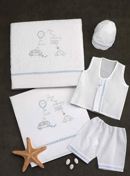 Λαδόπανα ελληνικής κατασκευής άριστης ποιότητας σε σιέλ απόχρωση. Το σετ περιλαμβάνει πετσέτα μικρή και μεγάλη, σεντονάκι και σετ εσώρουχα.