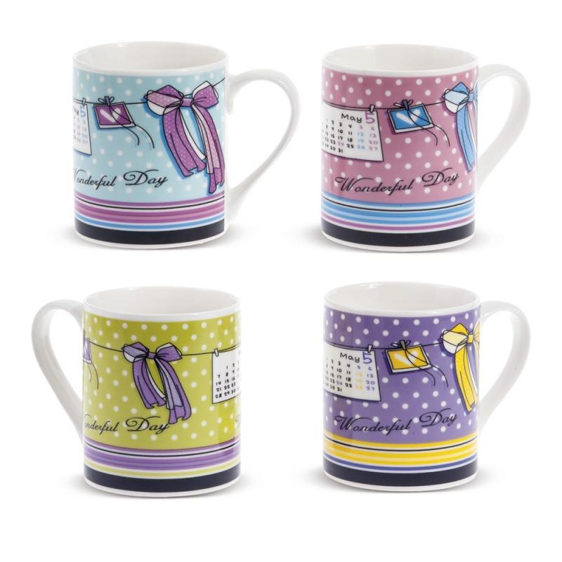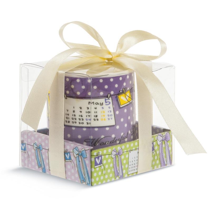 Μπομπονιέρα Βάπτισης κούπα ημερολόγιο φιόγκος από πορσελάνη σε 4 σχέδια. Διάσταση κούπας 7,4 x 8,5 cm και κουτιού 10 x 8 x 8,4 cm. Η τιμή αφορά δεμένη μπομπονιέρα με 5 κουφέτα αμυγδάλου ή 9 κουφετάκια smarties.