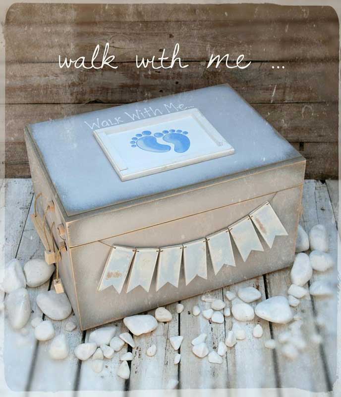 Ξύλινο Κουτί βάπτισης πατουσάκια (611774)