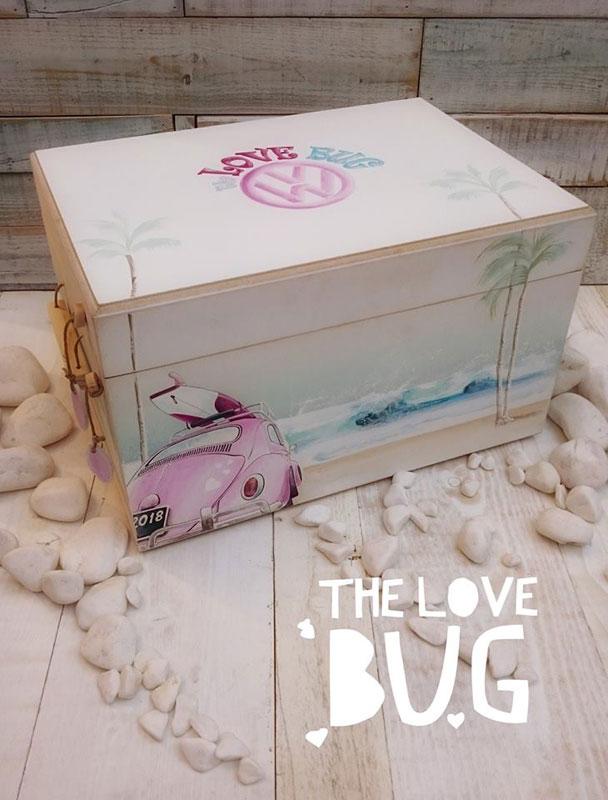 Ξύλινο Κουτί βάπτισης χειροποίητο με θέμα σκαραβαίος. Διαστάσεις κουτιού 48 εκ μήκος x 34,5 εκ πλάτος x 28 εκ ύψος.