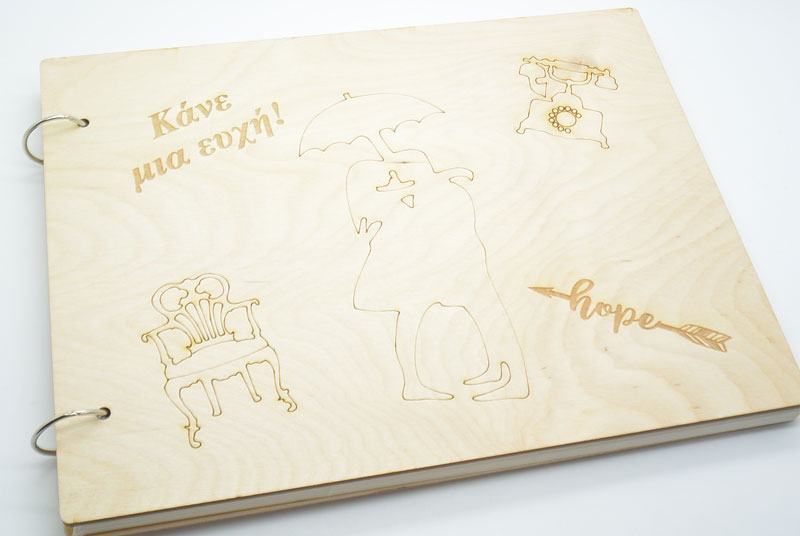 Βιβλίο ευχών γάμου Vintage με ξύλινο εξώφυλλο χαραγμένο με laser. Η διάσταση του είναι 28.5 x 22 εκ και περιέχει 30 σελίδες. Μπορεί να χαρακτούν τα ονόματα του ζευγαριού.