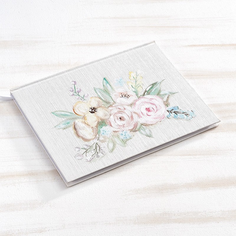 Βιβλίο ευχών λευκό με εξώφυλλο από χοντρό χαρτόνι, ζωγραφισμένο με λουλούδια.