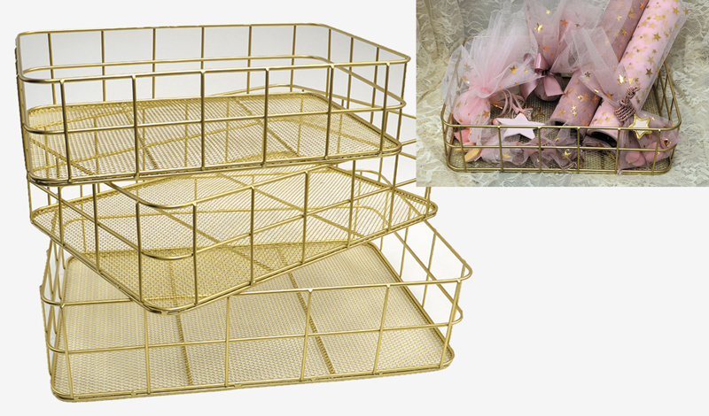 Μεταλλικό Καλάθι Σετ 3 τεμάχια για μπομπονιέρες με διαστάσεις A: 40cm x 30cm x 10.5cm, B: 37cm x 27cm x 9.8cm, Γ: 34cm x 24cm x 8.9cm .