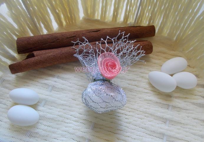 Κέρασμα για γάμο ή αρραβώνα σε αποχρώσεις του ασημί με διακοσμητικό λουλούδι. Το παρόν προιόν μπορεί να γίνει σε διάφορες αποχρώσεις.