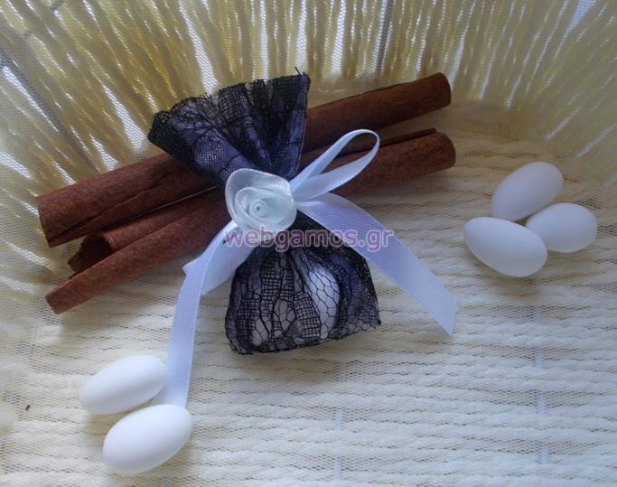 Κέρασμα για γάμο ή αρραβώνα με πουγκάκι δαντέλα και διακοσμητικό λουλούδι. Το παρόν προιόν μπορεί να γίνει σε διάφορες αποχρώσεις.