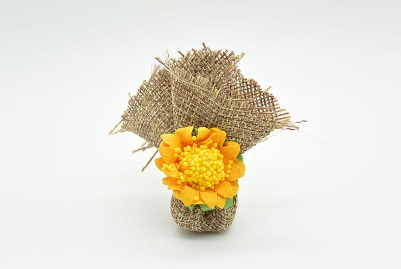 Κέρασμα για γάμο ή αρραβώνα σε καμβά και διακοσμητικό ήλιο. Περιλαμβάνει 2 κουφέτα αμυγδάλου.