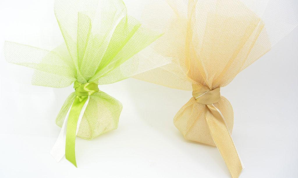 Μπομπονιέρα Γάμου απλή κλασσική. Περιλαμβάνει 2 τούλια 36 x 36 cm χρώματος της επιλογής σας και 5 κουφέτα.
