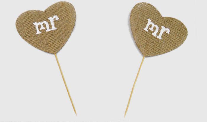 Ξύλινα Διακοσμητικά γάμου | Καρδιά Λινάτσα Mr στικ (0527162)