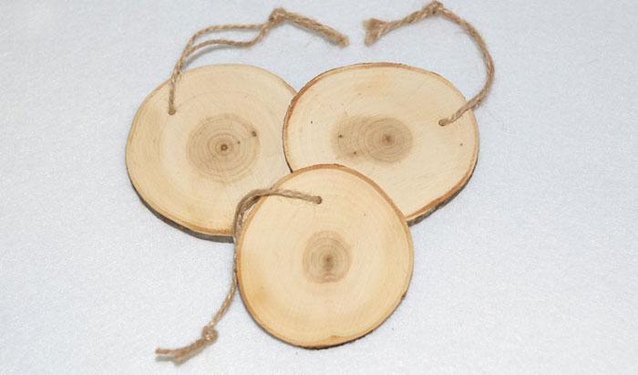 Ξύλινα Διακοσμητικά γάμου | Ξύλινος Κορμός φέτα με κορδόνι (0520113)