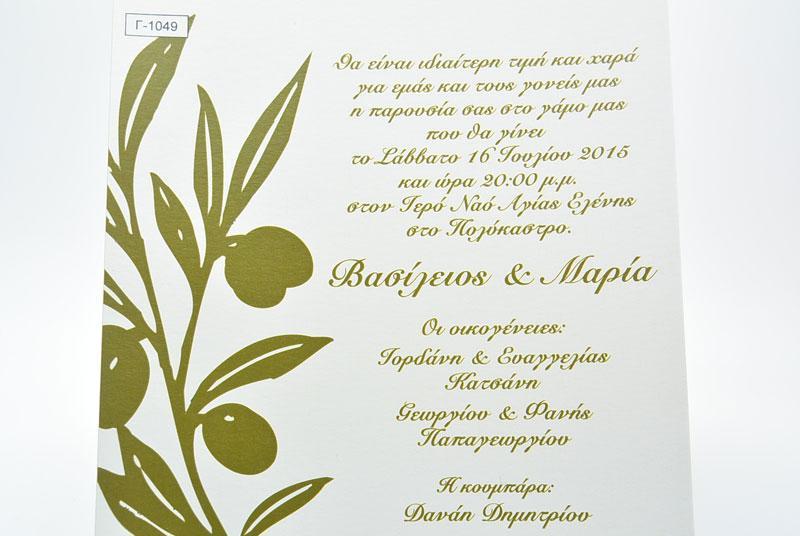 Προσκλητήριο Γάμου οικονομικό ελιά (1049)