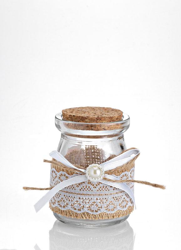 Μπομπονιέρα Γάμου βαζάκι με λινάτσα (202-8431)