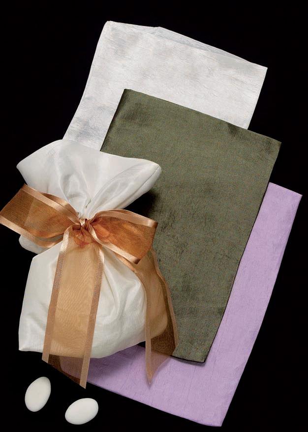 Μπομπονιέρα Γάμου πουγκί από ταφτά τσαλακωτό σε 3 αποχρώσεις. Η τιμή αφορά το δέσιμο της μπομπονιέρας με 5 κουφέτα.