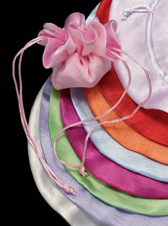 Μπομπονιέρα Γάμου από σατέν ύφασμα σε διάφορες αποχρώσεις. Η τιμή περιλαμβάνει το δέσιμο της μπομπονιέρας με 5 κουφέτα.