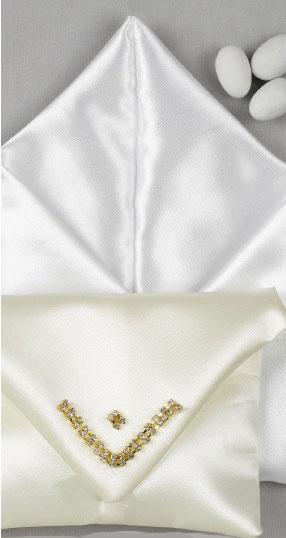 Μπομπονιέρα Γάμου φάκελος σατέν σε 2 αποχρώσεις.  Η τιμή αφορά δεμένη μπομπονιέρα με 5 κουφέτα αμυγδάλου. Διαστάσεις 16 x 25 εκ.