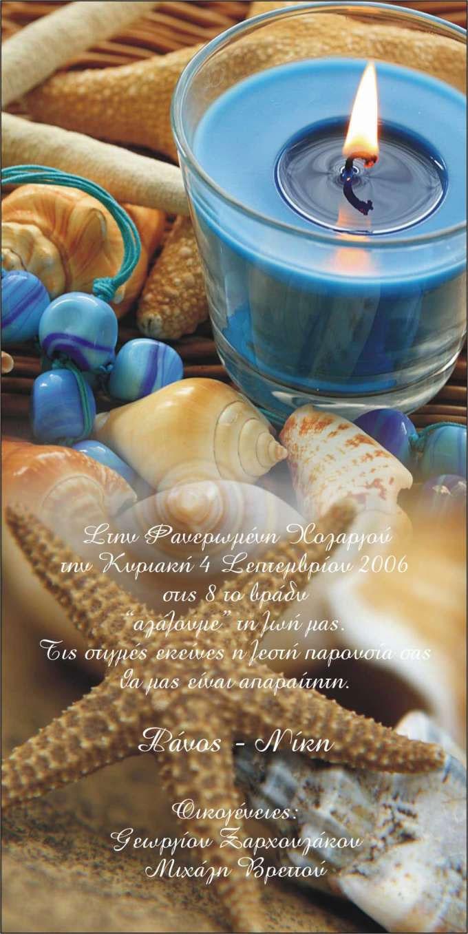 Οικονομικό Προσκλητήριο έγχρωμο με θέμα κερί και αστερία,προτείνετε για καλοκαίρι. Η τιμή αφορά και την εκτύπωση. Μπορεί να γίνει σε διάφορες διαστάσεις καθώς να δωθεί και ως ρολάκι.