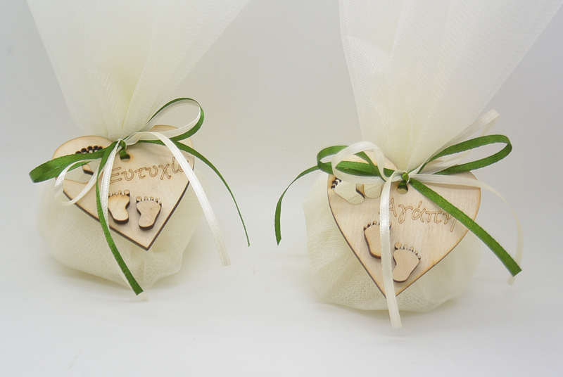 Μπομπονιέρα Γάμου Βάπτισης καρδιά μαγνητάκι με πατουσάκια (5123295)
