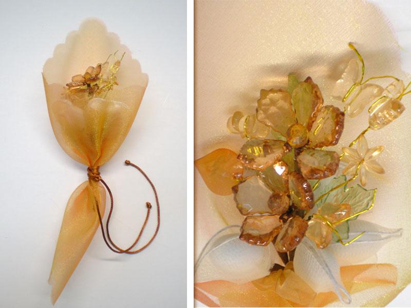 Μπομπονιέρα Γάμου μπουκέτο με 2 λουλούδια. Η τιμή περιλαμβάνει 5 κουφέτα.