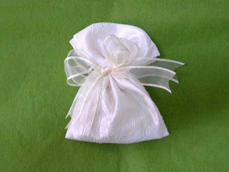 Μπομπονιέρα Γάμου πουγκί απλή. Η τιμή περιλαμβάνει πουγκί σατέν τσαλακωτό με διαστάσεις 13 x 17 cm και 5 κουφέτα.