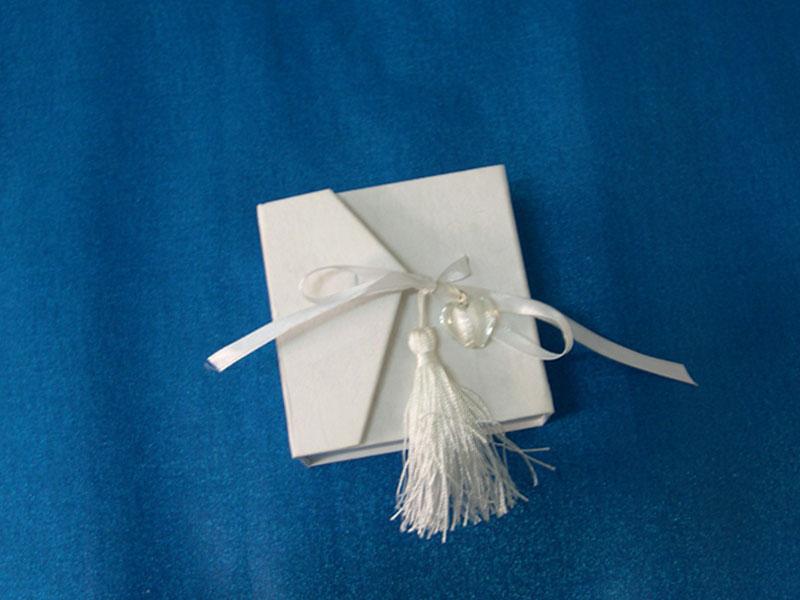 Μπομπονιέρα Γάμου κουτί με μικρή φούντα. Στην τιμή περιλαμβάνεται το χάρτινο κουτί, το διακοσμητικό καρδούλα, η μικρή φούντα και 5 κουφέτα. Μπορεί να γίνει σε διάφορα χρώματα. Διαστάσεις κουτιού 9 x 9 x 3.5 cm.