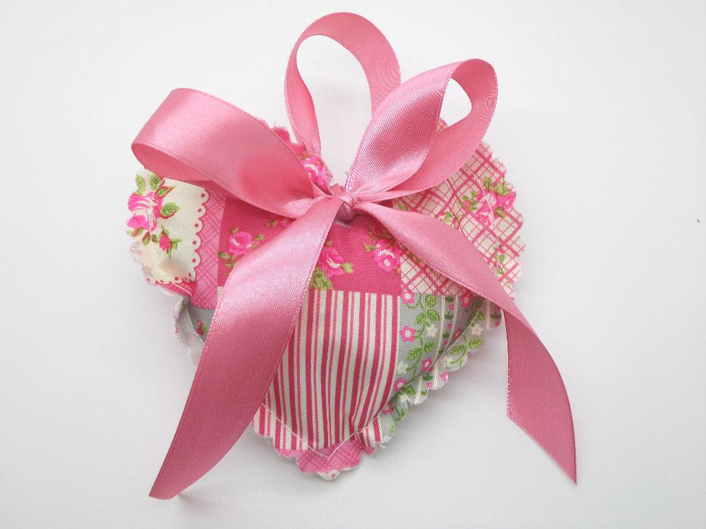 Μπομπονιέρα Γάμου πουγκί με λουλούδια σε σχήμα καρδιάς και αποχρώσεις σάπιο μήλο. Η τιμή αφορά δεμένη μπομπονιέρα με 5 κουφέτα αμυγδάλου. Διάσταση 12cm x 12cm.