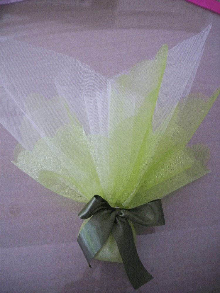 Οικονομική Μπομπονιέρα γάμου απλή κλασσική. Περιλαμβάνει  ένα τούλι απλό και ένα τούλι οργάντζα πολυτελείας χρώματος της επιλογής σας και 5 κουφέτα.