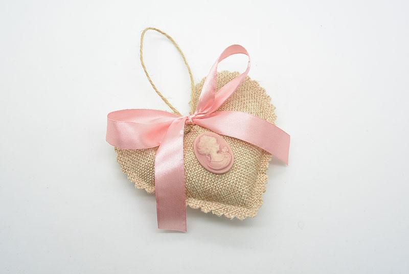 Μπομπονιέρα Γάμου πουγκί καρδιά με καμέο (201707)
